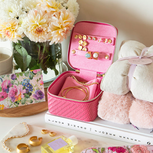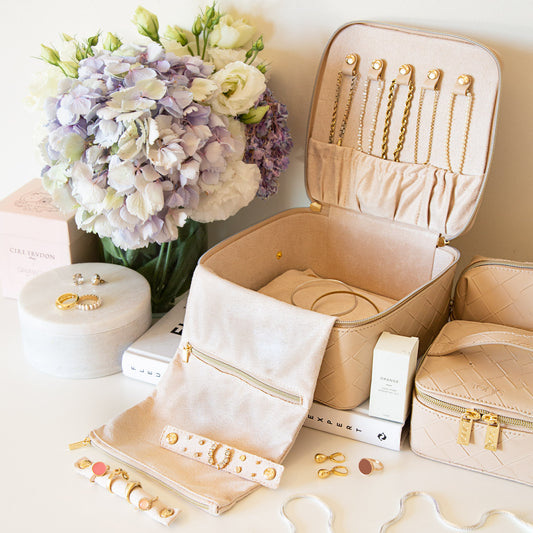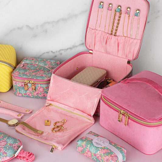 If you're searching for a jewellery storage solution before your next holiday, discover the Tonic collection of luxurious and stylish jewellery cases. Pair this beautiful gift with Tonic cosmetic bags, beauty bags or makeup bags to complete the ultimate travel set. With a carry-handle and double gold zip closure, keeping your precious pieces close to you while in transit is easier than ever with this elegant jewellery box.