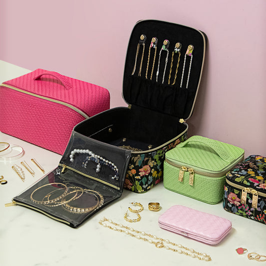 Each jewellery cube features our one-of-a-kind accordion compartment design with zip closures to ensure your jewels stay tangle-free, organised and free from damage. Additional organisation features inside these jewellery cases include dedicated earring holders, ring holders and elasticated pockets.
