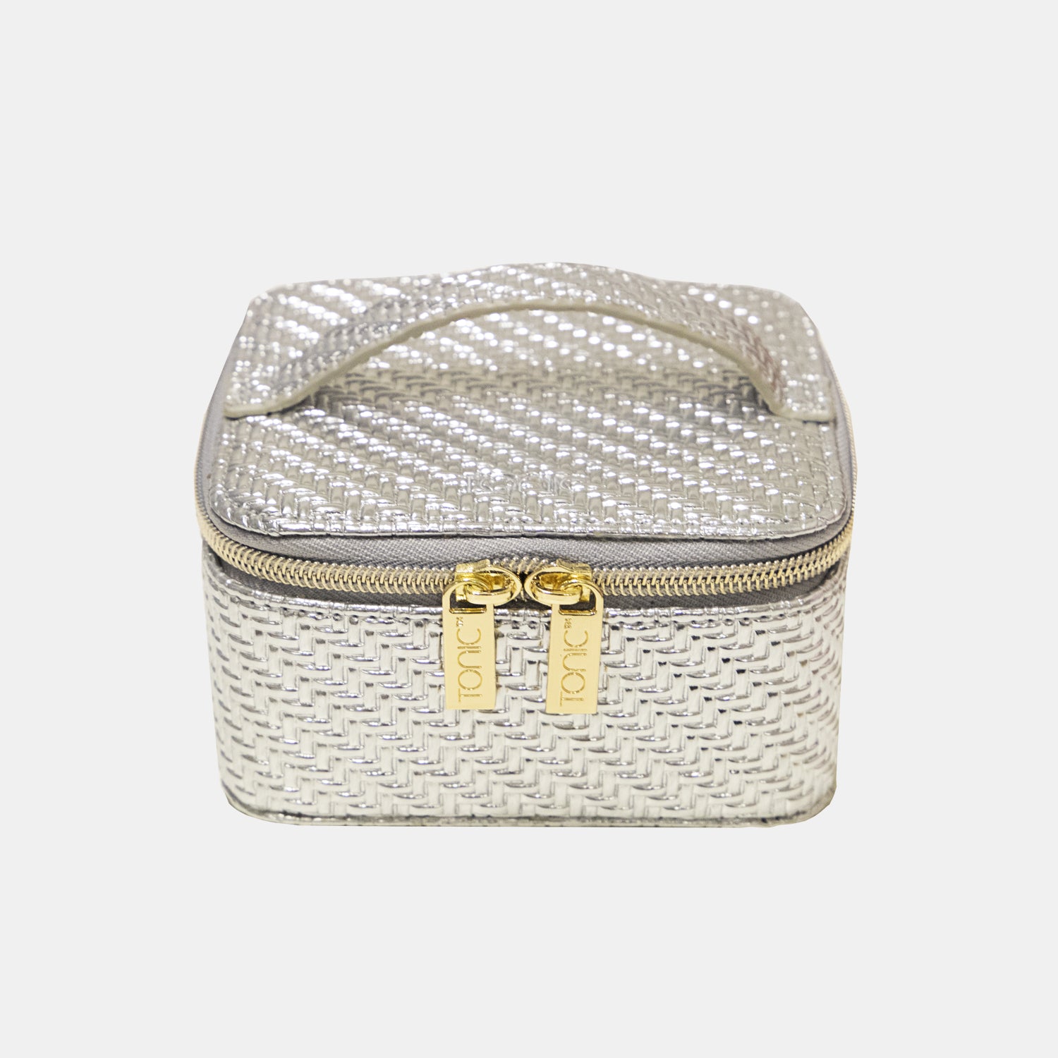 Crafted from vibrant metallic silver vegan leather with a herringbone texture, the trademarked Tonic Jewellery Cube will keep your jewellery essentials organised with ease.