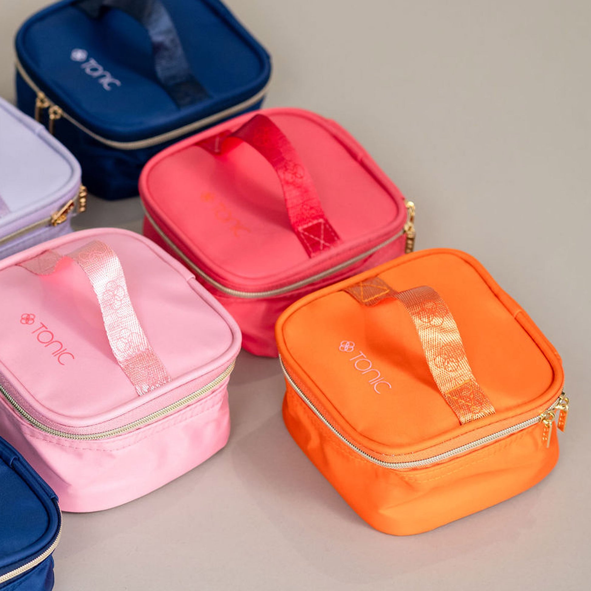 Crafted from recycled nylon and featuring a contrast recycled polyester interior this unique jewellery organiser is finished with a webbing handle embossed with the Tonic logo.