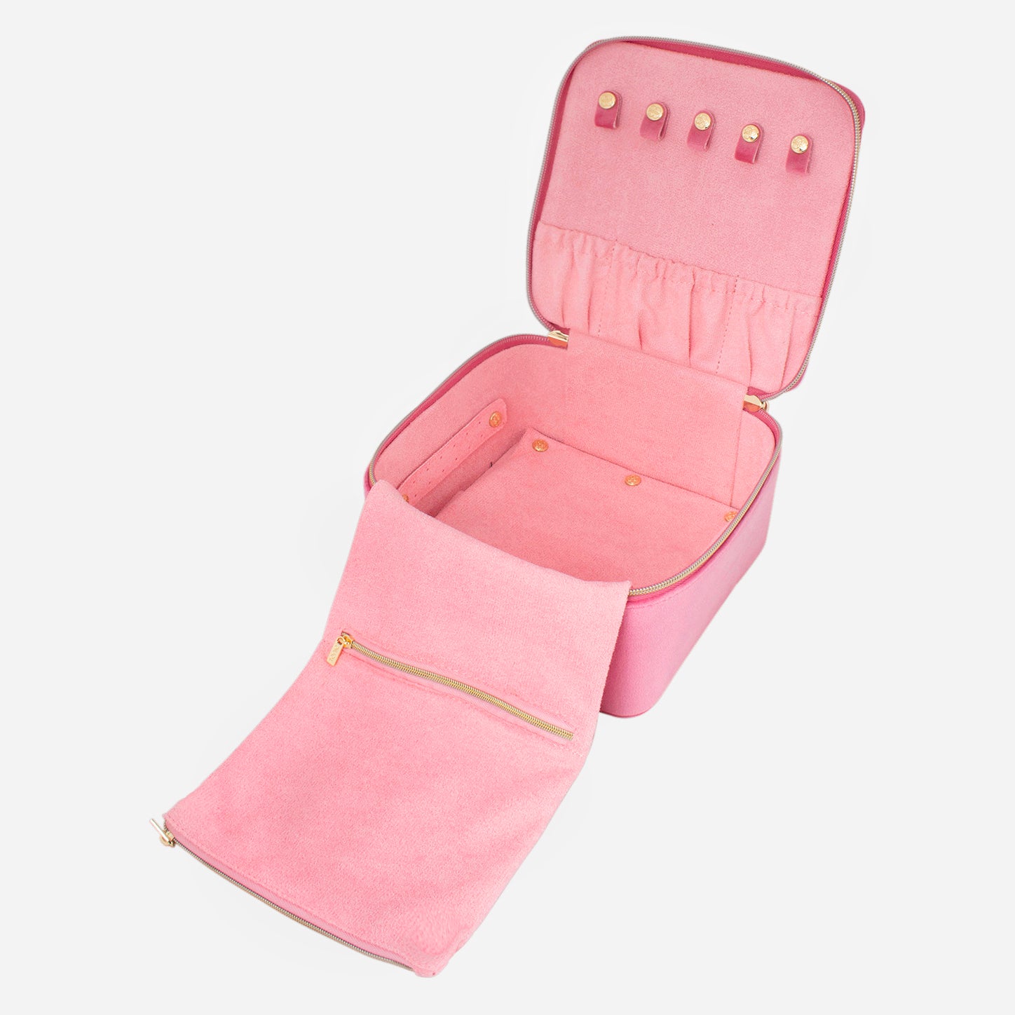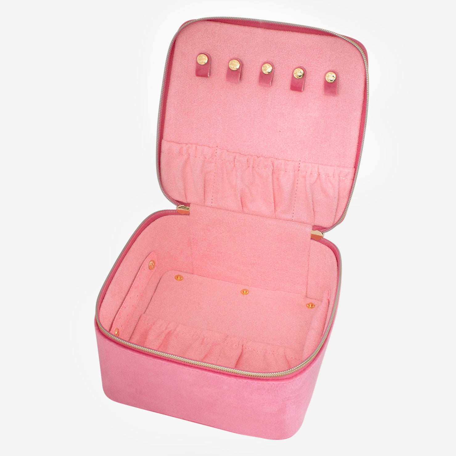 Introducing our stunning patented designed Large Jewellery Cube, the ultimate accessory storage solution for an organised and stylish wardrobe. This elegant cube features luxurious gold zips that open to reveal a spacious interior compartment. Inside, you'll find three of our unique accordion style pockets for optimal accessory organisation, as well as a ring holder and an earring holder on either side of the interior walls. We've thought of everything when it comes to organising your jewellery, with five velvet-covered clasps that are aligned to soft elasticated pockets on the interior of the lid to keep your necklaces tangle and knot-free. Additionally, an extra soft elasticated pocket on the base of the cube provides even more space for your favourite pieces. Crafted from high-quality materials, our jewellery cube is not only functional but also a stylish addition to any dressing table, wardrobe or bedside table. Its compact size makes it easy to store, while its sturdy construction ensures your jewellery remains safe and protected.